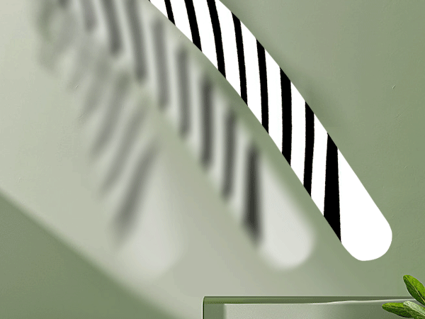 The holographic dots on the fan blade bend and refract light, creating an environment that confuses and scares flies, keeping them away.